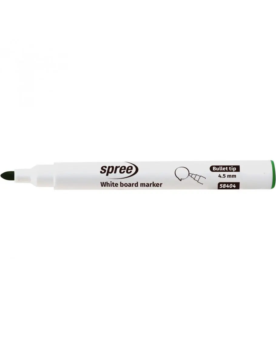 Маркерът за бяла дъска Spree е подходящ за употреба за бели дъски и флипчарти. Почиства се с лекота от бели дъски с помощта на суха гъба.