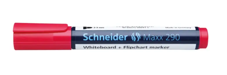 Маркерите за бяла дъска и флипчарт Maxx 290 са практични и удобни, тъй като изсъхват бързо върху дъска и не се просмукват в долните листа на флипчарти. Предимството на Maxx 290 е, че не са с натрапчив аромат на мастилото. Маркерите са с наситени цветове и възможност за презареждане.