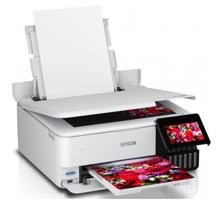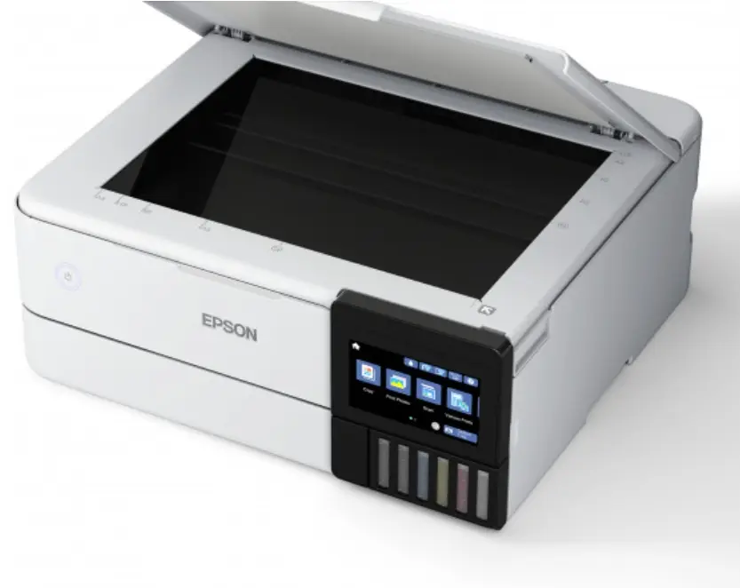 Panel: 10.9 cm colour touchscreen; Printing Method: 6-colour inkjet printer; Minimum Droplet Size: 1.9 pl, With Variable-Sized Droplet Technology; Ink Technology: Pigment black and Dye colour Inks; Nozzle Configuration: 360 Nozzles Black, 180 Nozzles per |