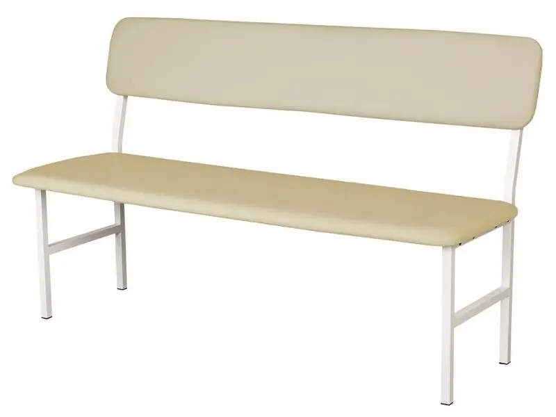 Медицинската пейка PMT БС с облегалка е със стоманена конструкция, тапицирана в изкуствена кожа, устойчива на износване и лесна за дезинфекция.