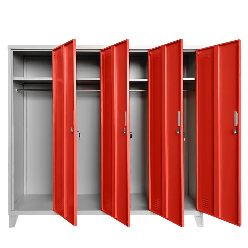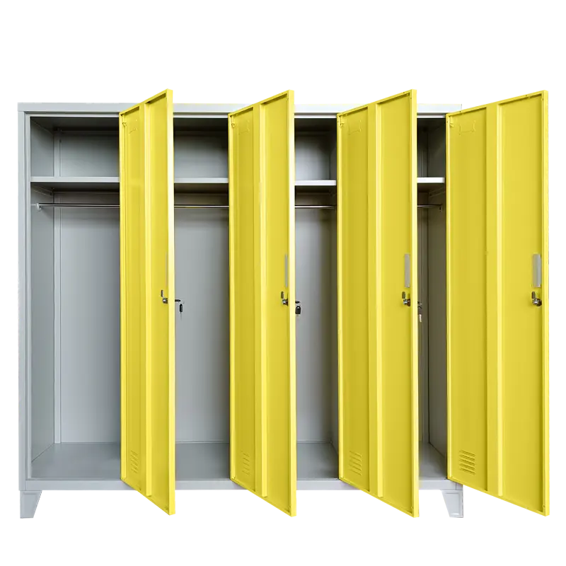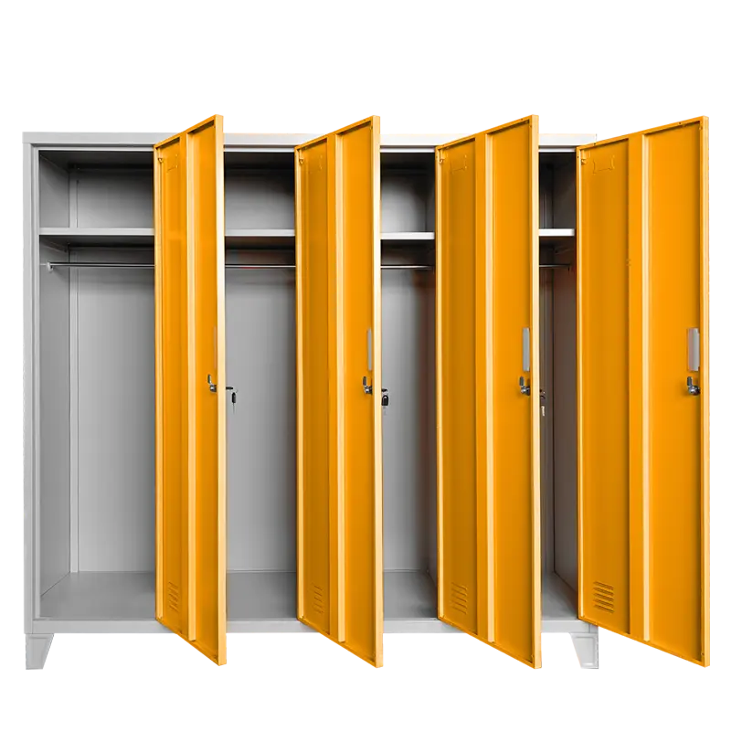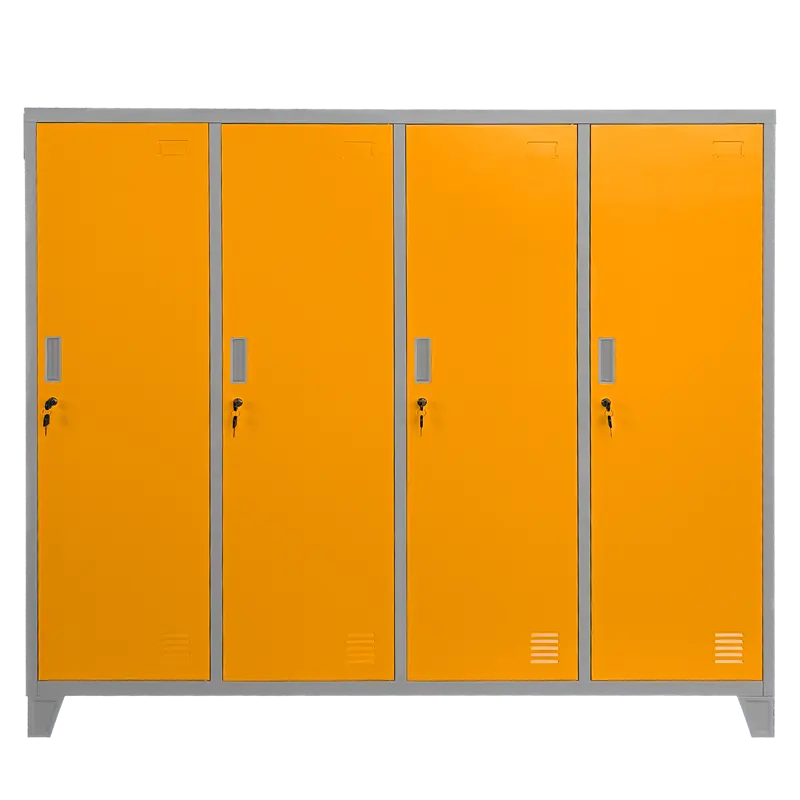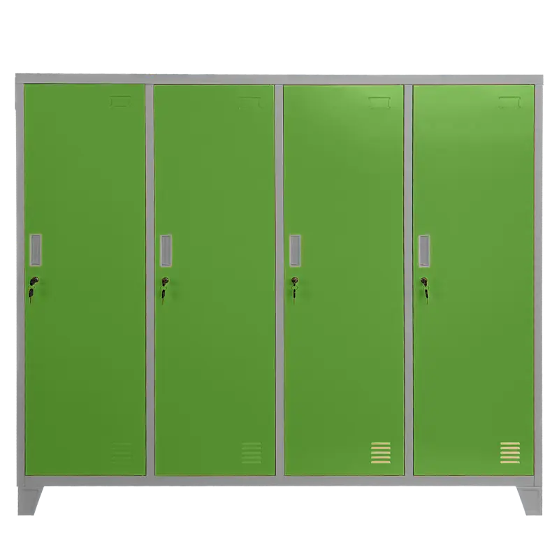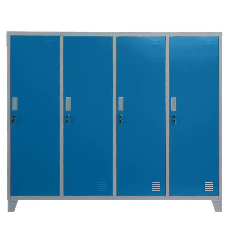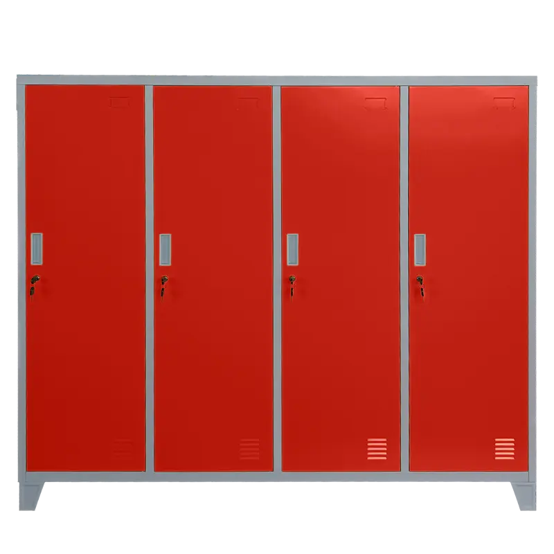 Метален гардероб детски BTL JZ е практичен метален гардероб с четири плътни врати, които се заключват с ключ. Всяко отделение е снабдено с рафт с товароносимост до 40 кг, вграден лост за закачалки и вентилационен отвор за по-добра циркулация на въздуха. Моделът е оборудван с крака с височина 10 см, които улесняват почистването под шкафа. Подходящ е за оборудване на детски градини. ен гардероб, детски метален гардероб, гардероб за детска градина, метален шкаф с ключ, четворен метален гардероб, гардероб с рафтове и лост, гардероб с вентилация, метален гардероб с крака, праховобоядисан гардероб, здрав метален шкаф, гардероб за съхран