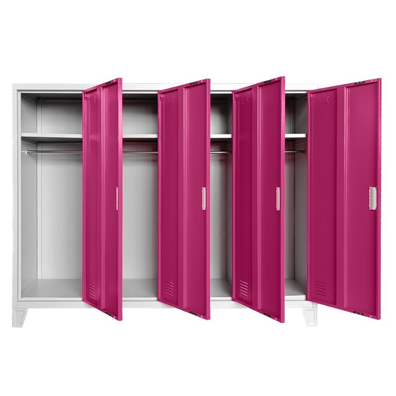 Метален гардероб BTL JZ е четворен метален гардероб с четири плътни врати, които се затварят с помощта на магнитна система. Всяко отделение разполага с рафт с товароносимост до 40 кг, вграден лост за закачалки и вентилационен отвор за добра циркулация на въздуха. Моделът е снабден с крака с височина 10 см, които улесняват почистването под шкафа. Изработен е от праховобоядисан метал с грапаво-шагрен покритие. Подходящ е за оборудване на детски градини.
