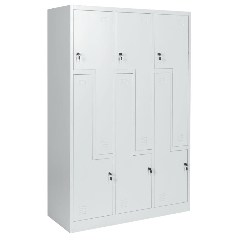 Метален гардероб BTL КK с 6 отделения 180х120х50 см предлага сигурно и организирано съхранение в 6 самостоятелни отделения, всяко със собствен лост за закачалки и индивидуално заключване. Здравата конструкция от праховобоядисан метал е устойчива на ежедневна употреба, а вградените вентилационни отвори осигуряват постоянна циркулация на въздуха. Подходящ за училища, спортни и медицински обекти, както и за всяка модерна съблекалня.
