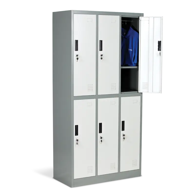 Металният гардероб BTL KL с 6 отделения е практично и сигурно решение за съхранение на дрехи и лични вещи в офиси, училища, спортни съблекални, производствени и складови помещения. Изработен е от здрав праховобоядисан метал с грапаво-шагрен покритие, което го прави устойчив на надрасквания и износване.