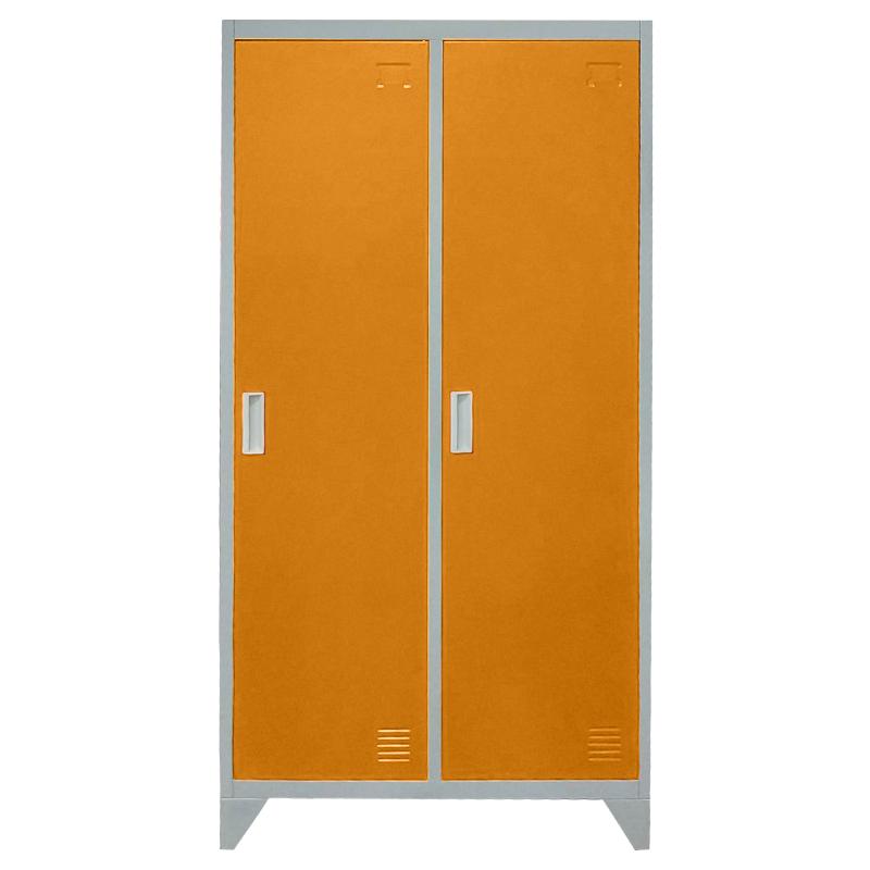 Металният гардероб BTL с 2 отделения, който по желание може да бъде монтиран към стена. Той е снабден с 2 отделения, като във всяко има лост за закачалки и един регулируем рафт. Вратите са с магнитно затваряне и вентилационни отвори за приток на въздух.