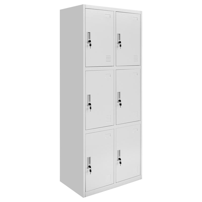 Метален гардероб BTL ZH с 6 отделни врати, всяка със собствен механизъм за заключване с ключ и вентилационни отвори за по-добра циркулация на въздуха. Моделът е подходящ за съхранение на лични вещи в офиси, съблекални, спортни центрове или училища. Просторните отделения осигуряват удобство за ползване както от служители, така и от посетители.