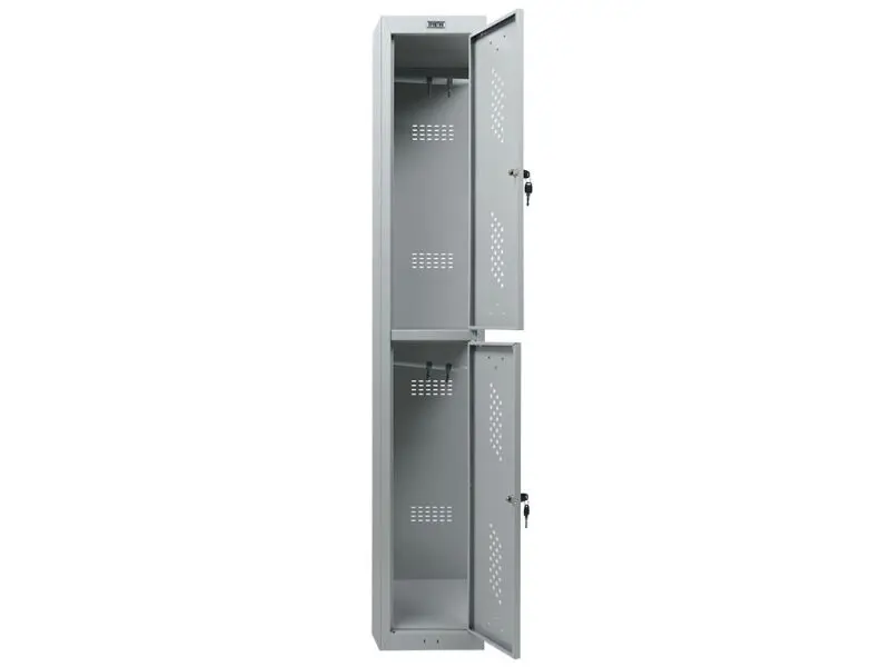 Металният гардероб PMT с 2 отделения предоставя 2 самостоятелни отделения, в които може да съхранявате не само дрехи, но и обувки. Благодарение на голямото по обем пространство гардеробът е изключително практичен и удобен за употреба.