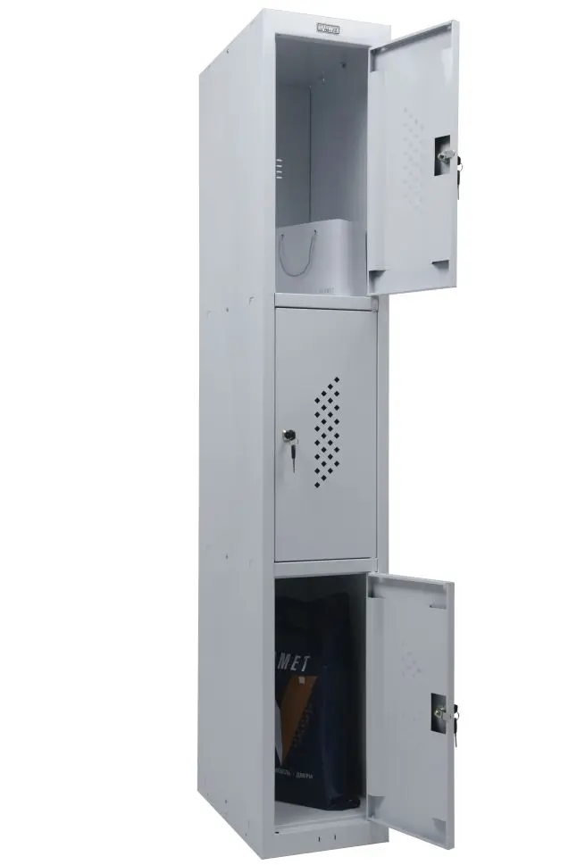 Метален гардероб PMTсе състои от 3 отделения за съхранение на багаж. Всяко отделение разполага със самостоятелен заключващ механизъм, като по този начин подсигурява неприкосновеността на поставените в него вещи.