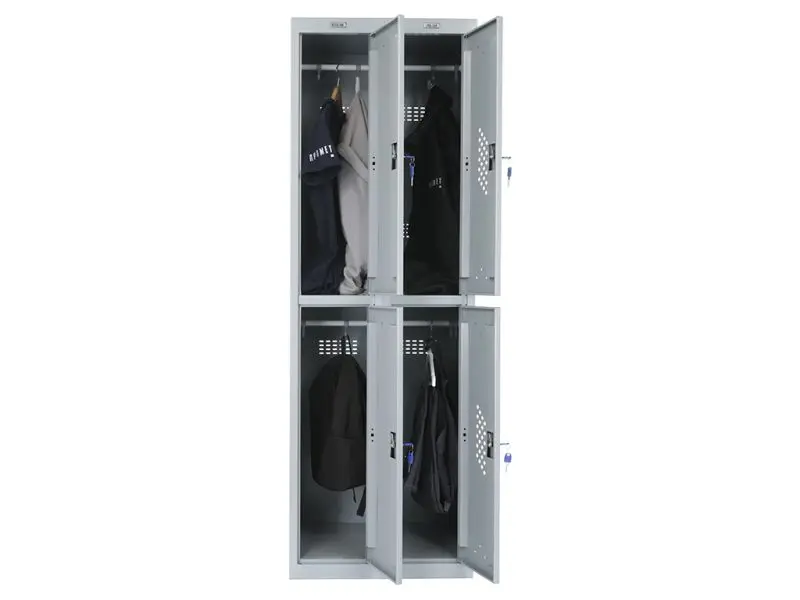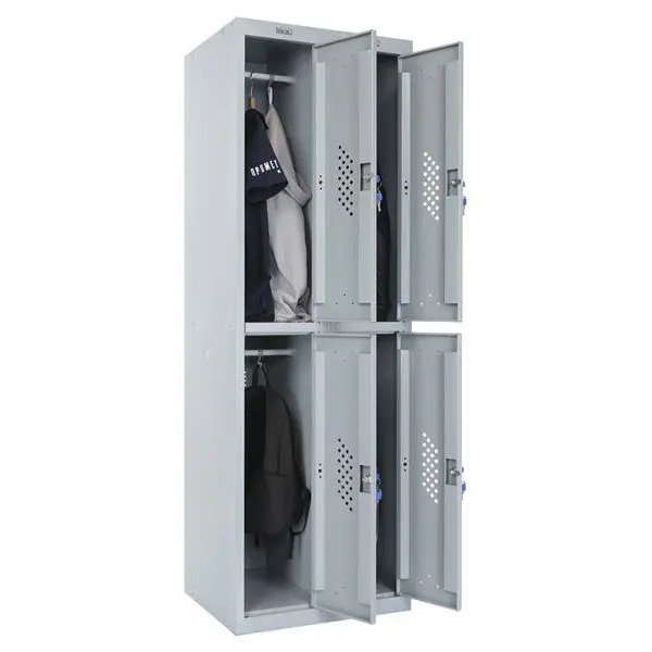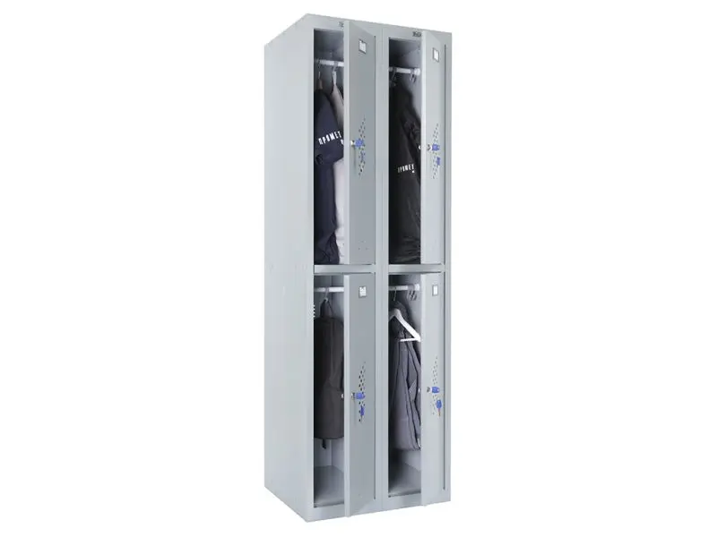 Металният гардероб PMT с 4 отделения предоставя 4 самостоятелни отделения, в които може да съхранявате не само дрехи, но и обувки. Благодарение на голямото по обем пространство гардеробът е изключително практичен и удобен за употреба.