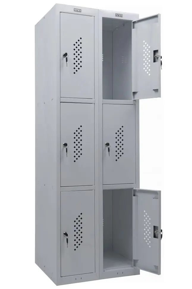 Метален гардероб PMT с 6 отделениe 183х60х50 см предоставя шест автономни отделения за сигурното и удобно съхранение на лични вещи. Гардеробът е изключително практичен за употреба в съблекални на фитнеси, центрове за аеробика, плувни комплекси, а също така и багажни помещения.