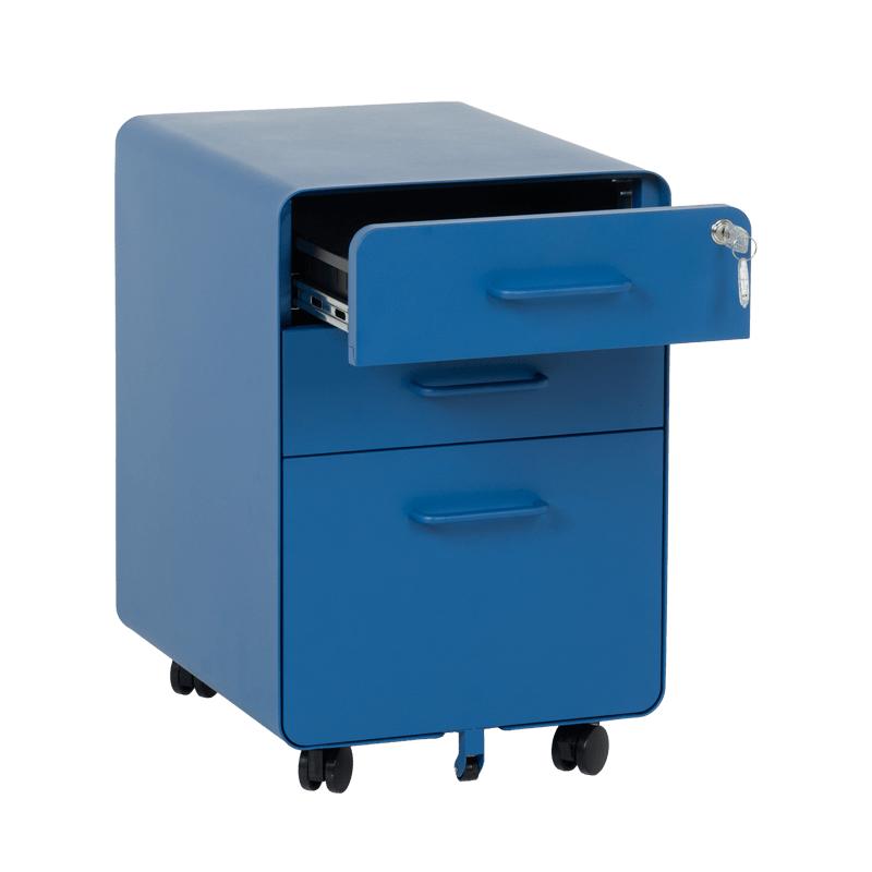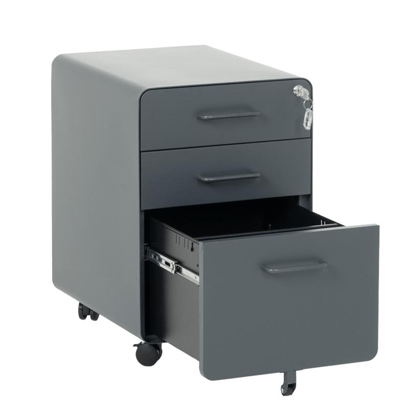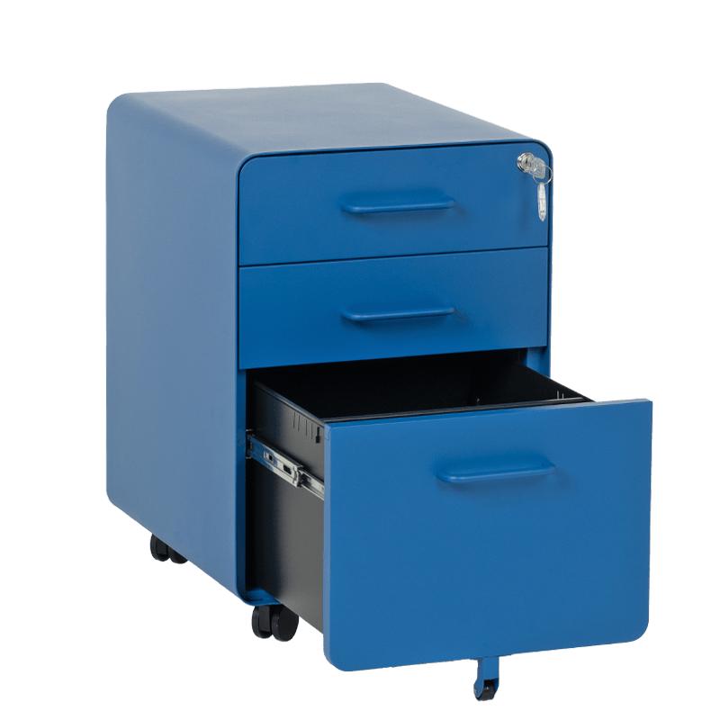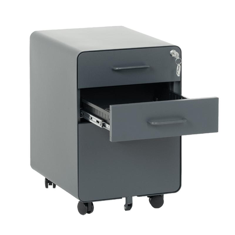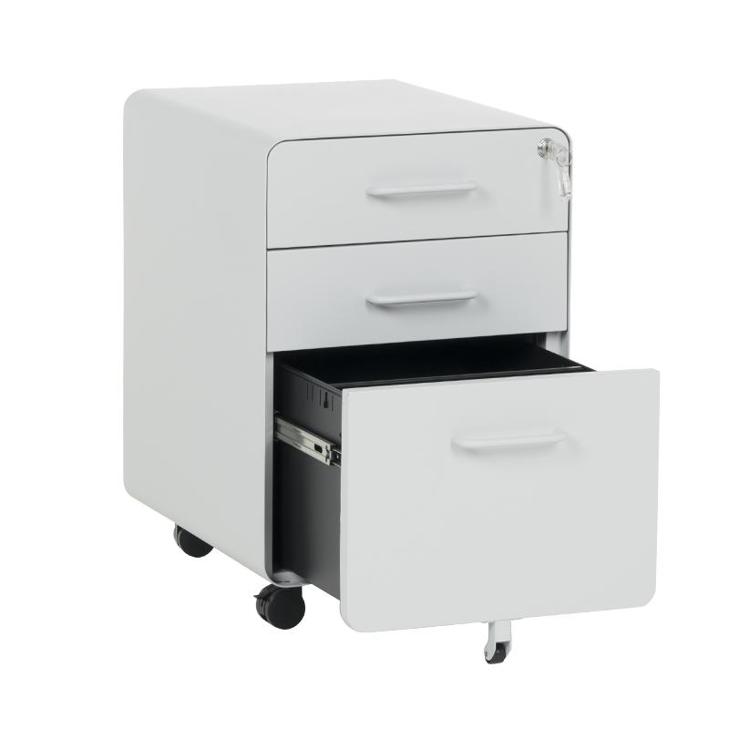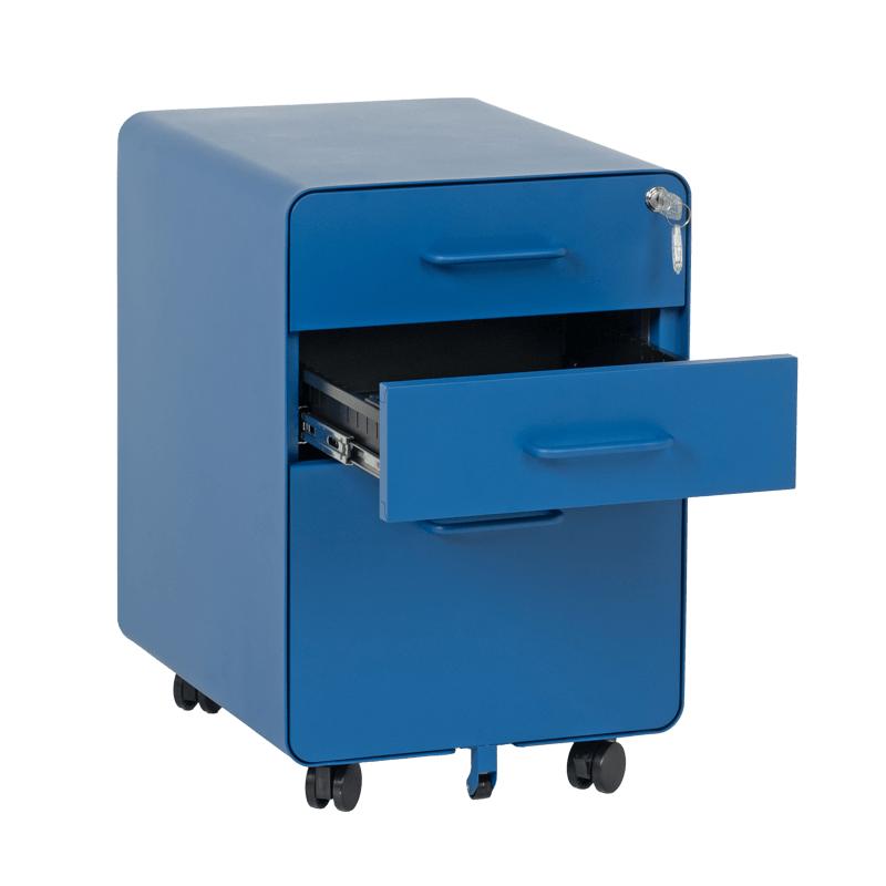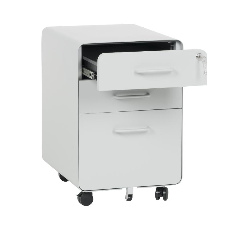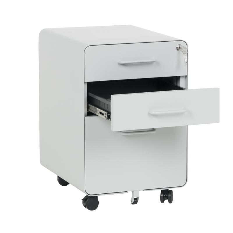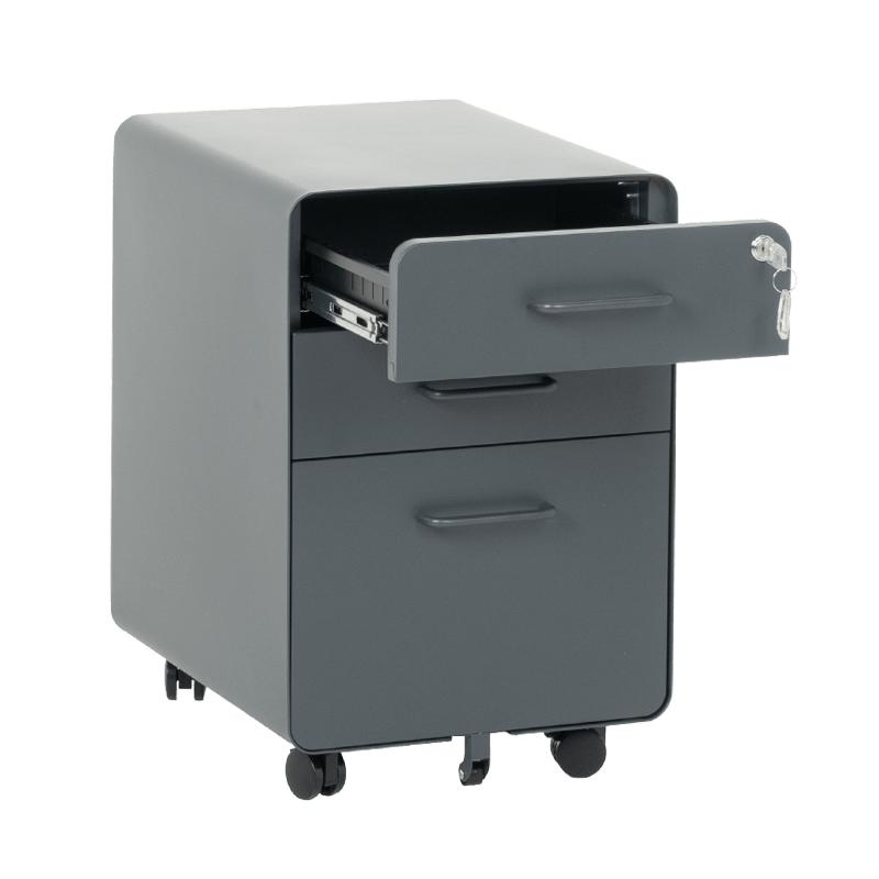 Металният контейнер A BTL е с 3 чекмеджета с удобни дръжки и централно заключване. В основата на шкафа има колела за лесно придвижване при нужда. Контейнерът пристига сглобен, без необходимост от монтаж. Моделът е със система против накланяне, поради която чекмеджетата се отварят едно по едно (за да отворите едно, другите 2 трябва да са затворени).