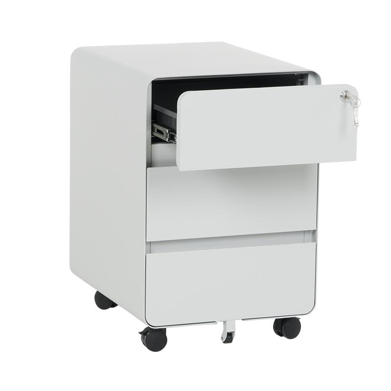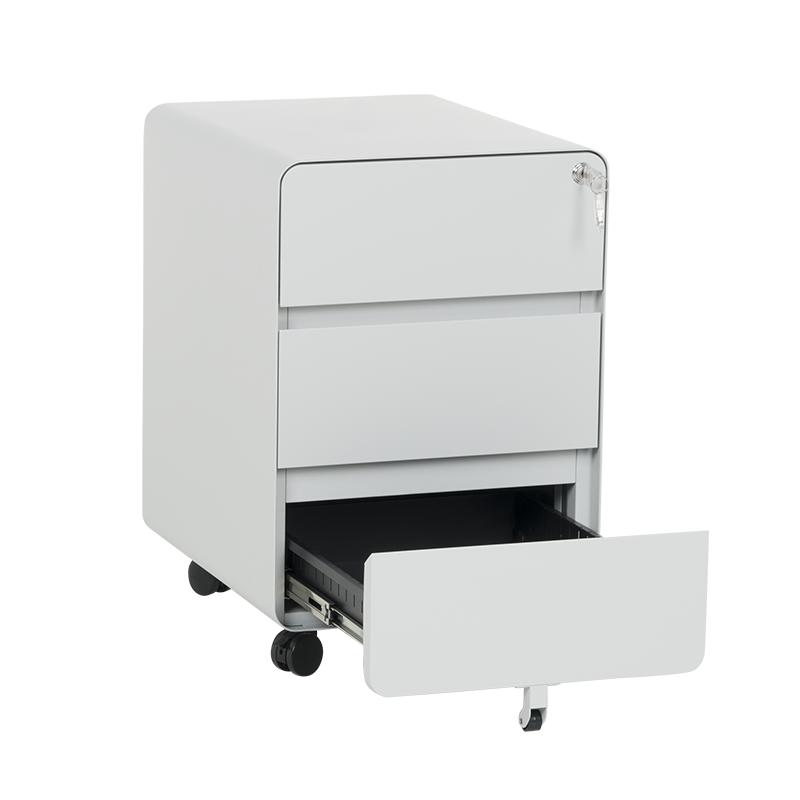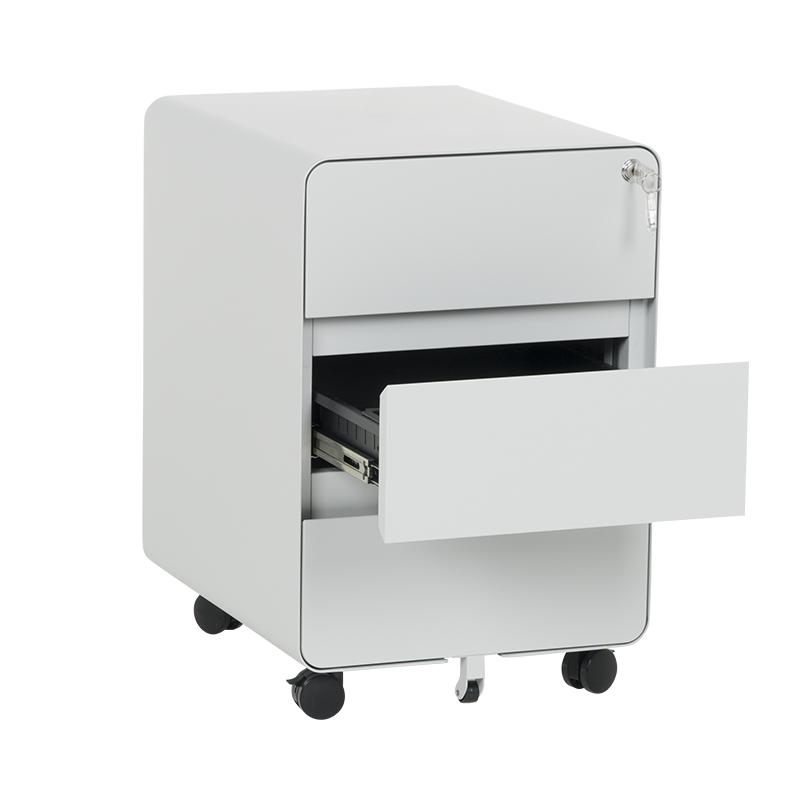 Метален контейнер E BTL е практичен метален шкаф тип кардекс, който пристига сглобен, без нужда от монтаж. Моделът е със заоблени линии и колела в основата, за лесно придвижване от едно място на друго. Разполага с 3 чекмеджета със централно заключване. При отключено положение всяко чекмедже се отваря самостоятелно, когато другите 2 са затворени.