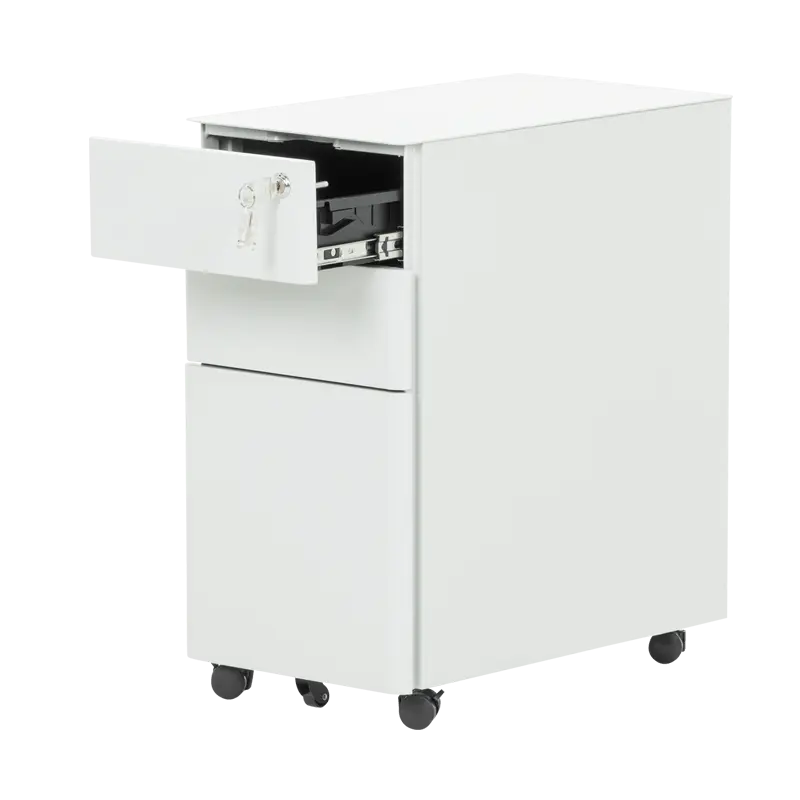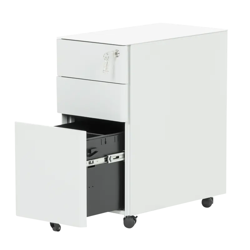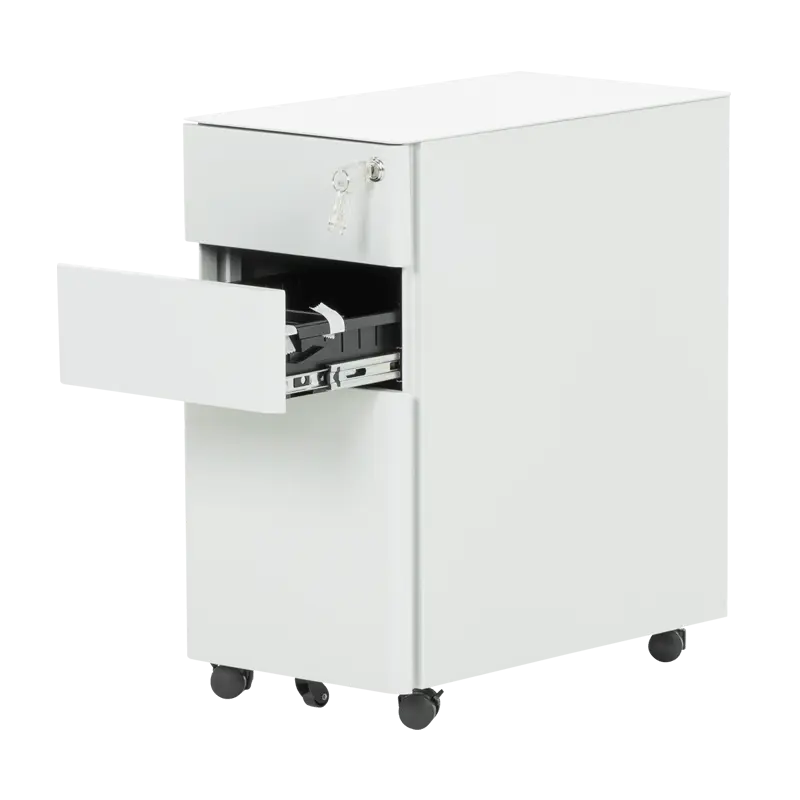 Офис контейнер F BTL е практичен кардекс с 3 чекмеджета и централно заключване. След отключване всяко чекмедже се отваря самостоятелно, докато другите 2 са в затворено положение.