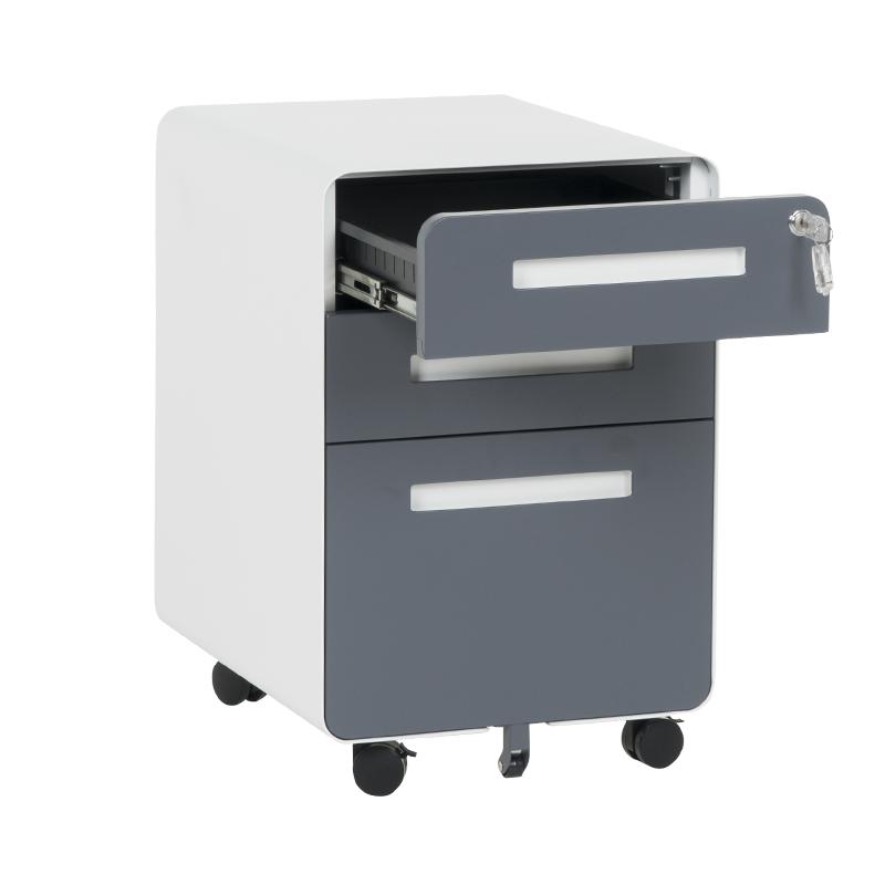 Металният контейнер H BTL е практичен офис контейнер тип кардекс с 3 отделения. Моделът не изисква монтаж и лесно може да бъде преместен, благодарение на колелата в основата. Всяко чекмедже се отваря самостоятелно (само ако другите са затворени), а всички могат да бъдат заключени едновременно, чрез централния заключващ механизъм.