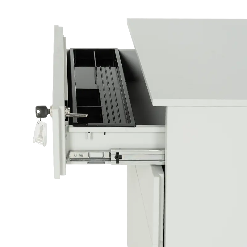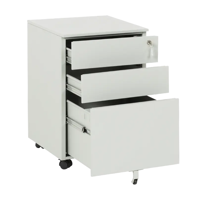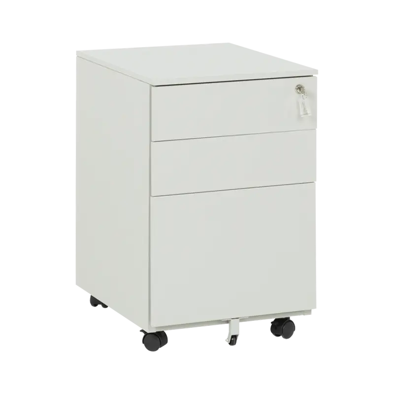 Офис контейнерът е практичен метален шкаф тип кардекс. Моделът е със заоблени линии и колела в основата, за лесно придвижване от едно място на друго. Разполага с 3 чекмеджета със централно заключване. При отключено положение всяко чекмедже се отваря самостоятелно, когато другите 2 са затворени.