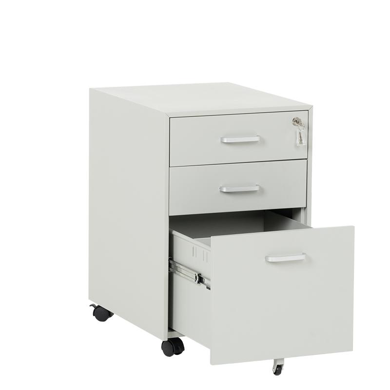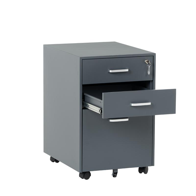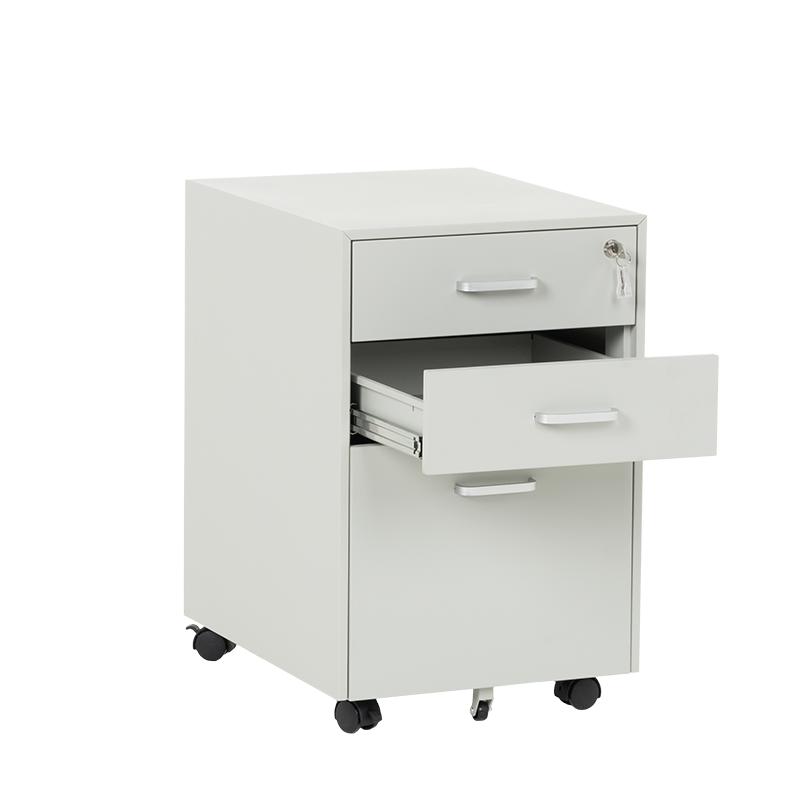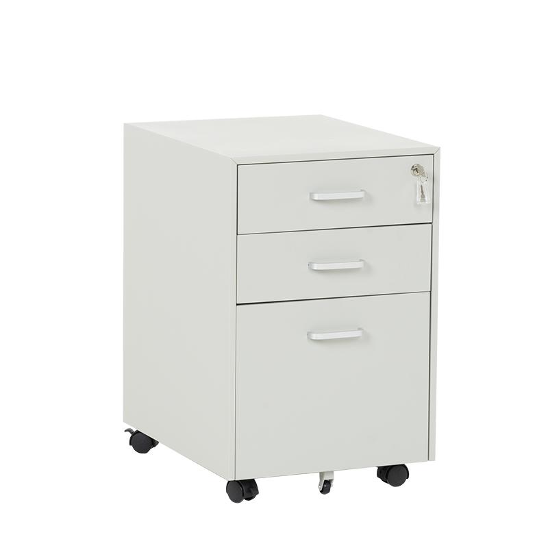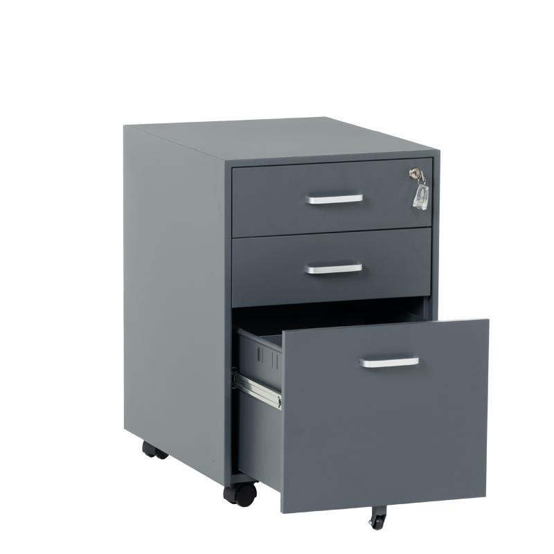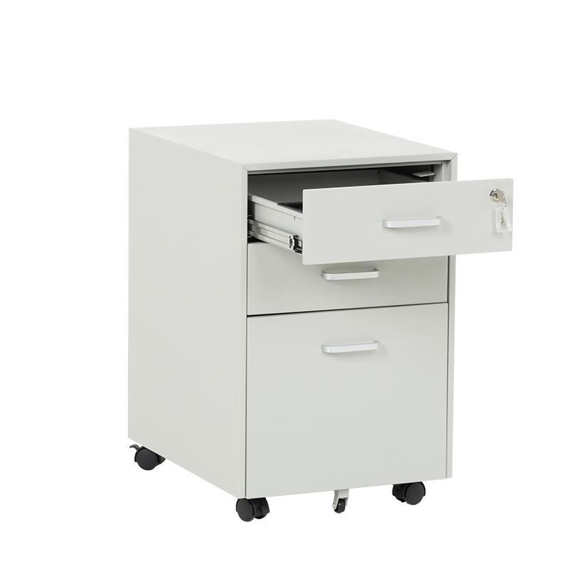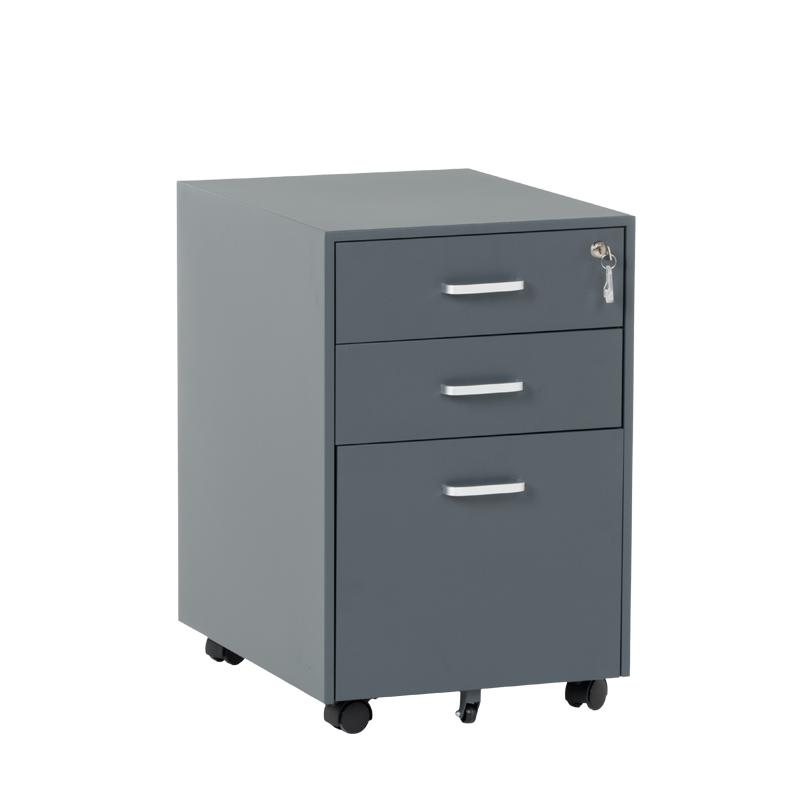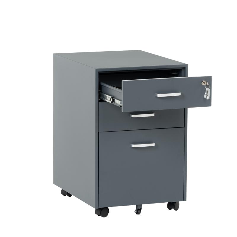 Офис контейнерът е метален шкаф тип кардекс с 3 чекмеджета с удобни дръжки и централно заключване. В основата на шкафа има колела за лесно придвижване при нужда. Моделът е със система против накланяне, поради която чекмеджетата се отварят едно по едно (за да отворите едно, другите 2 трябва да са затворени).