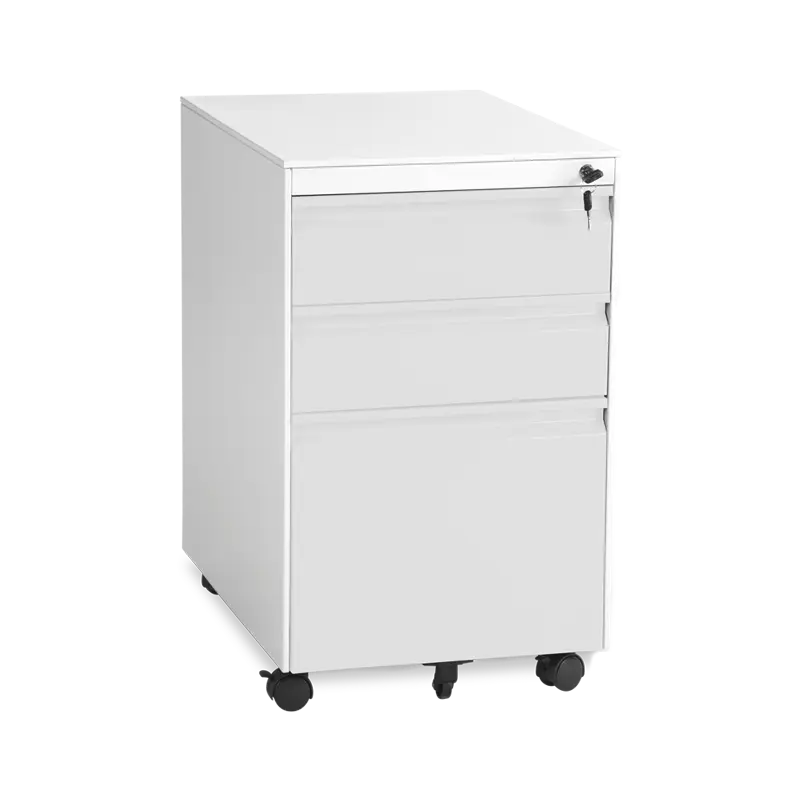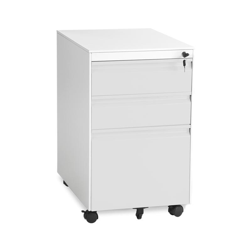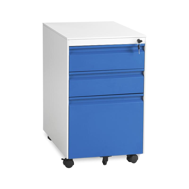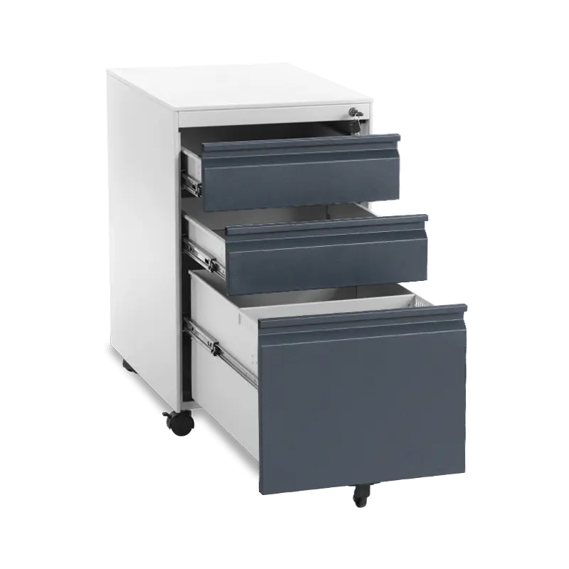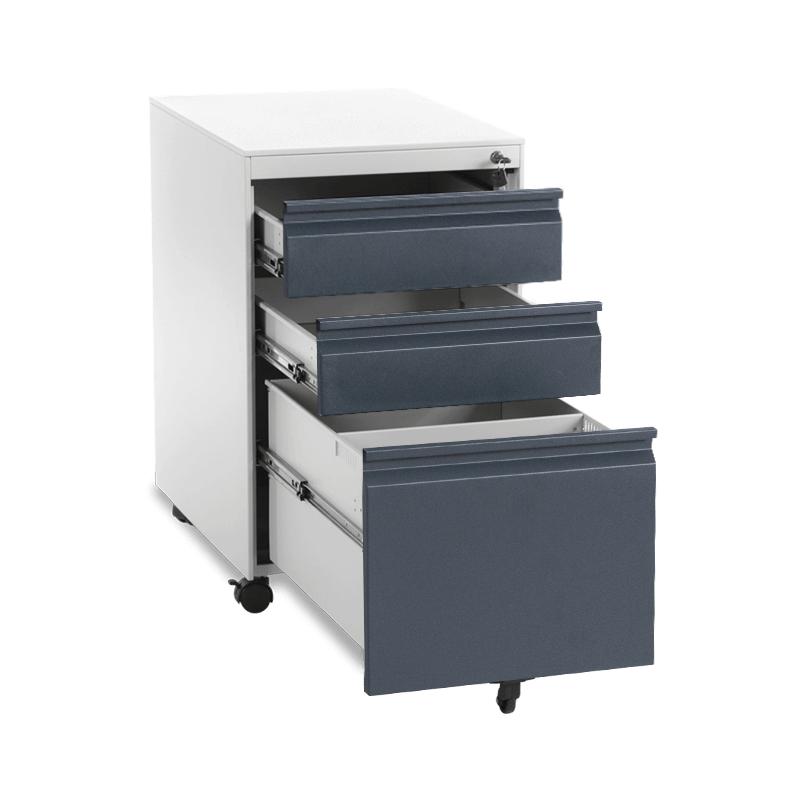 Металният контейнер L BTL с 3 чекмеджета е удобен за съхранение на папки, досиета и документи. Състои се от три на брой чекмеджета, като първото е снабдено и с пластмасово разделение за дребни канцеларски материали, а най-долното и най-голямо по размер е предназначено за висящи папки. Заключването на всички чекмеджета е централно, с помощта на малко уникално ключе.