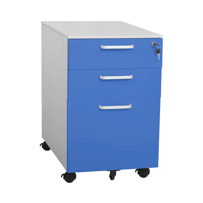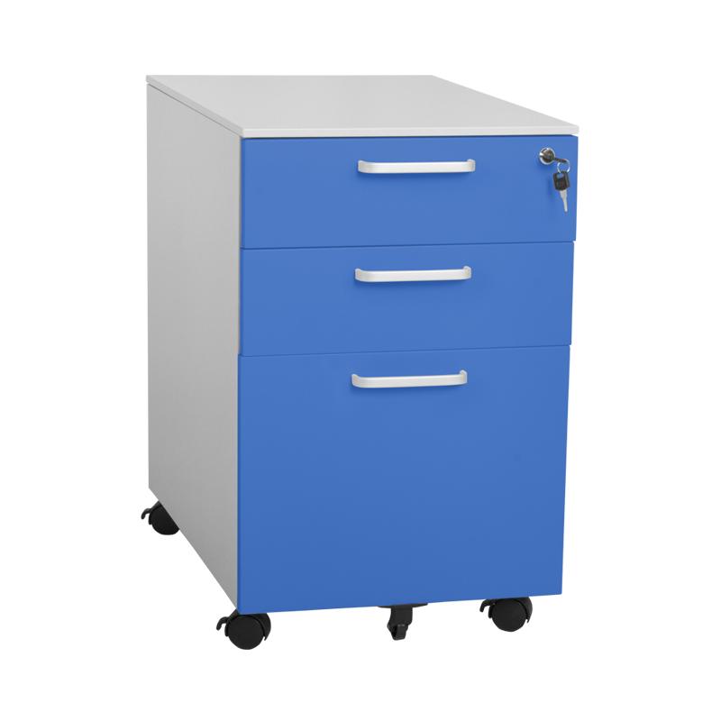 Металният контейнер M BTL с 3 чекмеджета е удобен за съхранение на папки формат A4, като притежава централно заключване за всяко от трите чекмеджета.