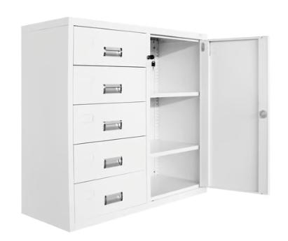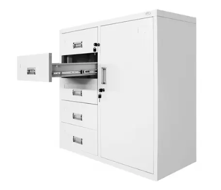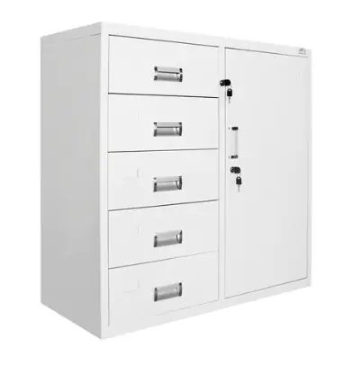 Металният контейнер UG е здраво и сигурно решение за съхранение на документи или ценности. Със своя модерен дизайн и здрава конструкция, той е идеален за офиси, работилници, складове и институции. Разполага с 6 просторни чекмеджета, всяко с индивидуално заключване, което осигурява сигурност и лесен достъп до съдържанието. Издърпващите се водачи позволяват плавно и безпроблемно отваряне и затваряне.