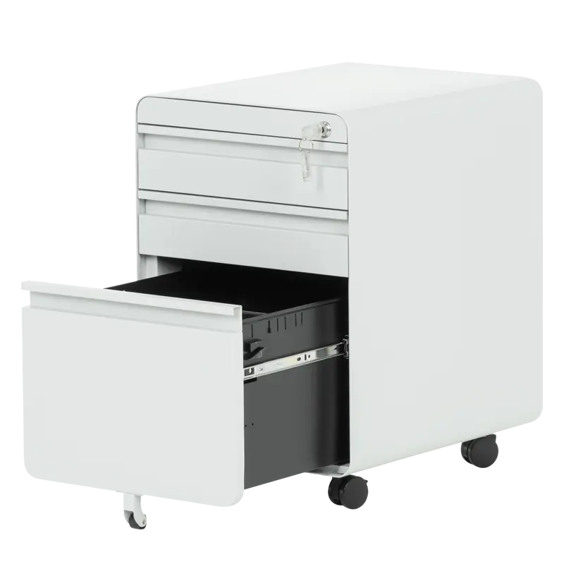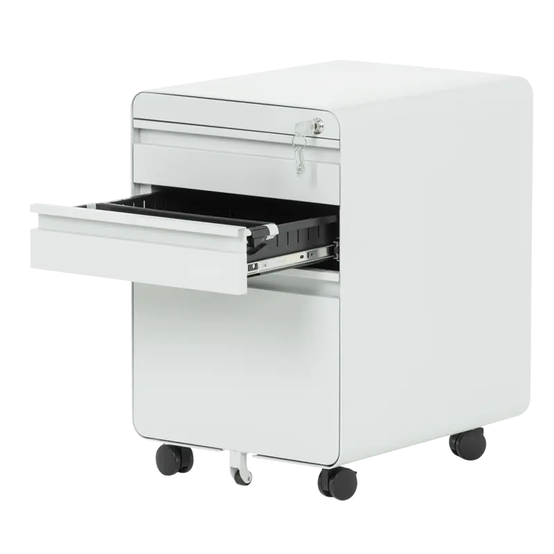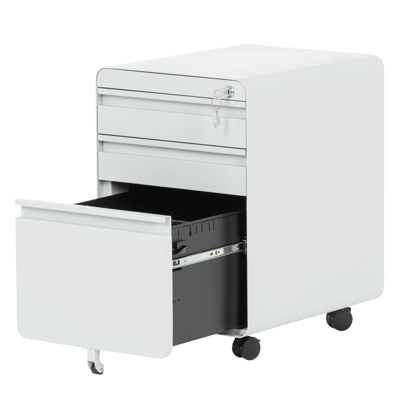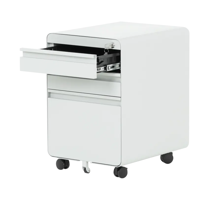 Офис контейнер V BTL е практичен кардекс с 3 чекмеджета и централно заключване. След отключване всяко чекмедже се отваря самостоятелно, докато другите 2 са в затворено положение.