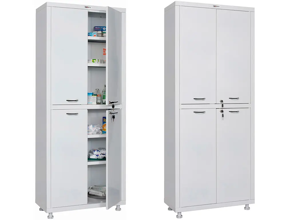 Металният медицински шкаф PMT 1670 SS предоставя голямо място за съхранение както на документация, така и на медикаменти. Шкафът предлага сигурност и комфорт в медицинските учреждения.
