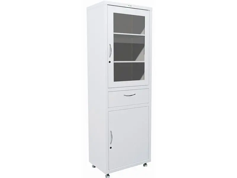 Металният медицински шкаф PMT 1760 R1 предлага освен затъмнено стъкло за ограничен достъп, така и допълнително чекмедже за разлика от другите сходни артикули, което го прави още по-функционален и практичен.