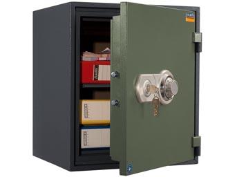 - Корпуса и вратата на сейфа са двустенни с пълнеж от огнеупорен бетон