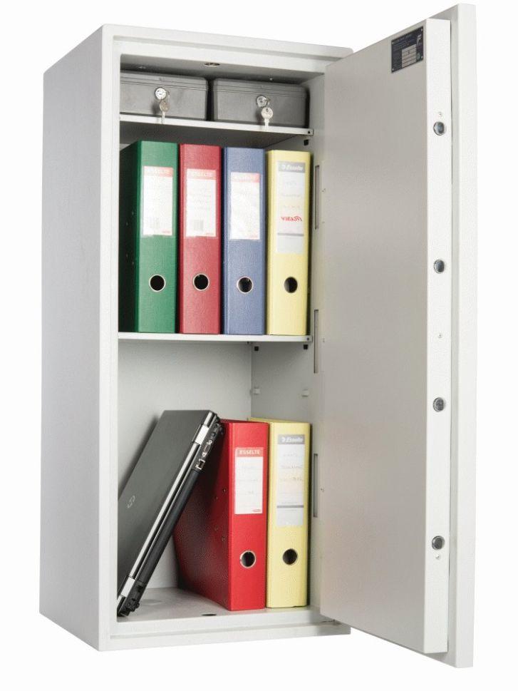 Металният сейф PMT 800 EL предлага съхранението на до осем броя стандартен размер класьори с документи. Сейфът е подходящ за офис и търговски помещения.