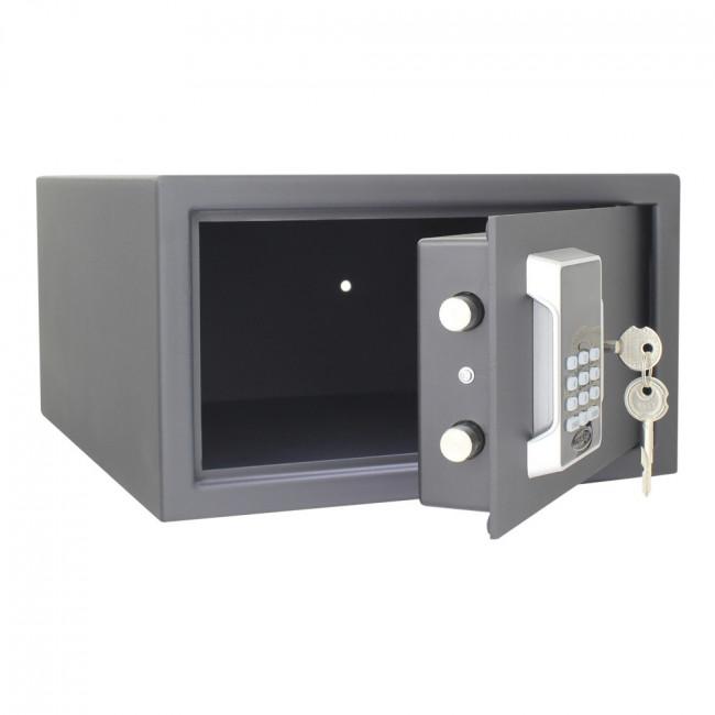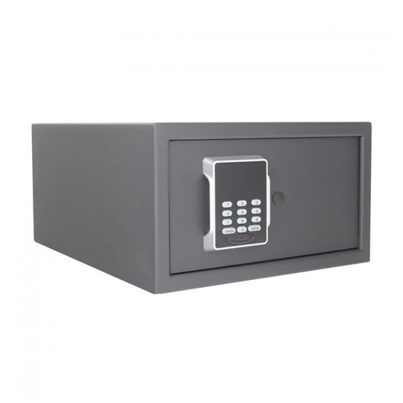 Сейф за външен монтаж UNS NPT L е сейф за лаптоп, който се заключва посредством електронен код. Съвременната му визия е подходяща за всеки интериор, а компактните размери го правят идеален за монтаж в шкаф, гардероб и др. скрити места. Удобен за съхранение както на пари и документи, така и на лаптопи и таблети. Подходящ за дома, офиса, вилата, хотела и др. Електронният код работи с Мастер код и код за клиента, което го прави  изключително добро решение за използване в хотели.
