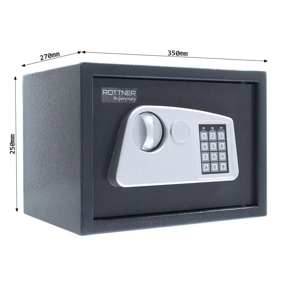 Метален сейф Speedy е дело на австрийската фирма Rottner. Удебелените размери на вратата на сейфа предоставят допълнителна сигурност за вашите лични вещи и бижута. Заключването се осъществява чрез електронна брава със 100 милиона възможности за комбинация. Също така разполага и с ергономична дръжка за по-лесното му отваряне.