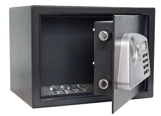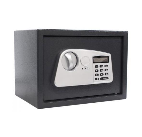 Метален сейф Trendy е дело на австрийската фирма Rottner. Удебелените размери на вратата на сейфа предоставят допълнителна сигурност за вашите лични вещи и бижута. Заключването се осъществява чрез електронна брава.