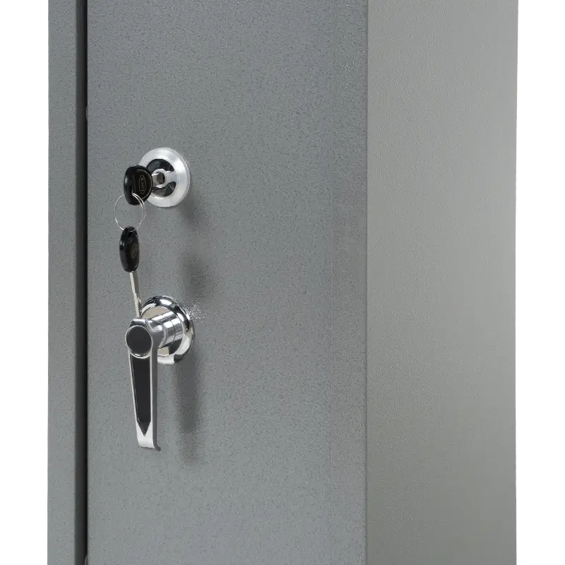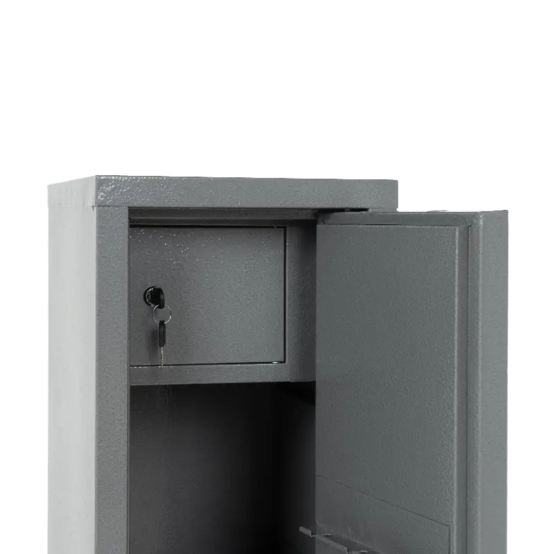 Метален сейф за оръжия BTL KZ е висококачествен оръжеен сейф, създаден за сигурно съхранение на до 5 броя неразглобено дългоцевно ловно оръжие. Моделът е изработен от подсилен праховобоядисан метал и разполага с надеждно 4-точково заключване. Вътрешната касета осигурява допълнително място за боеприпаси и ценни вещи, а предвидените отвори за монтаж към стена повишават нивото на защита.