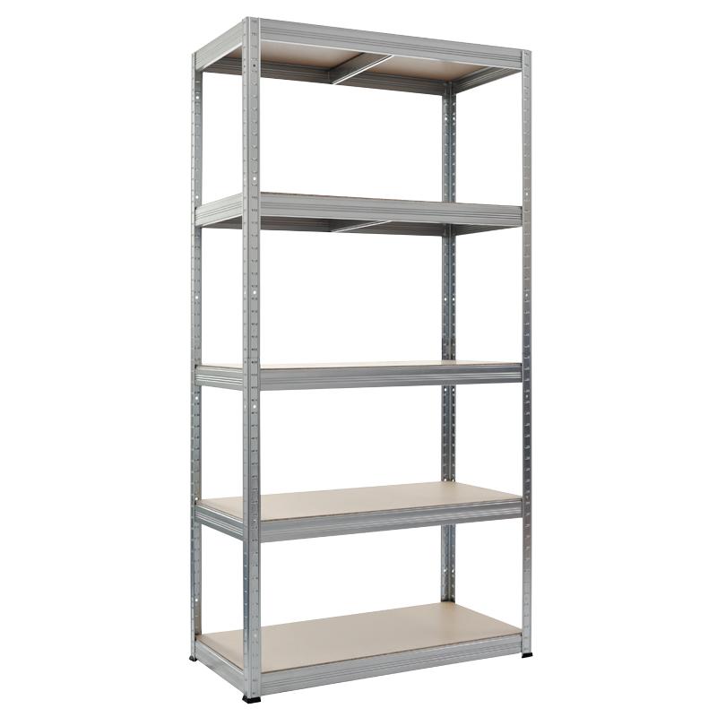 Стабилният стелаж с размери 180х90х45 см е изработен от галванизиран метал. Той има 5 МДФ рафта всеки, от които издържа на максимално натоварване до цели 350 кг. Стелажът се сглобява бързо и лесно чрез безболтов монтаж, а височината на рафтовете може да бъде регулирана според вашите нужди.