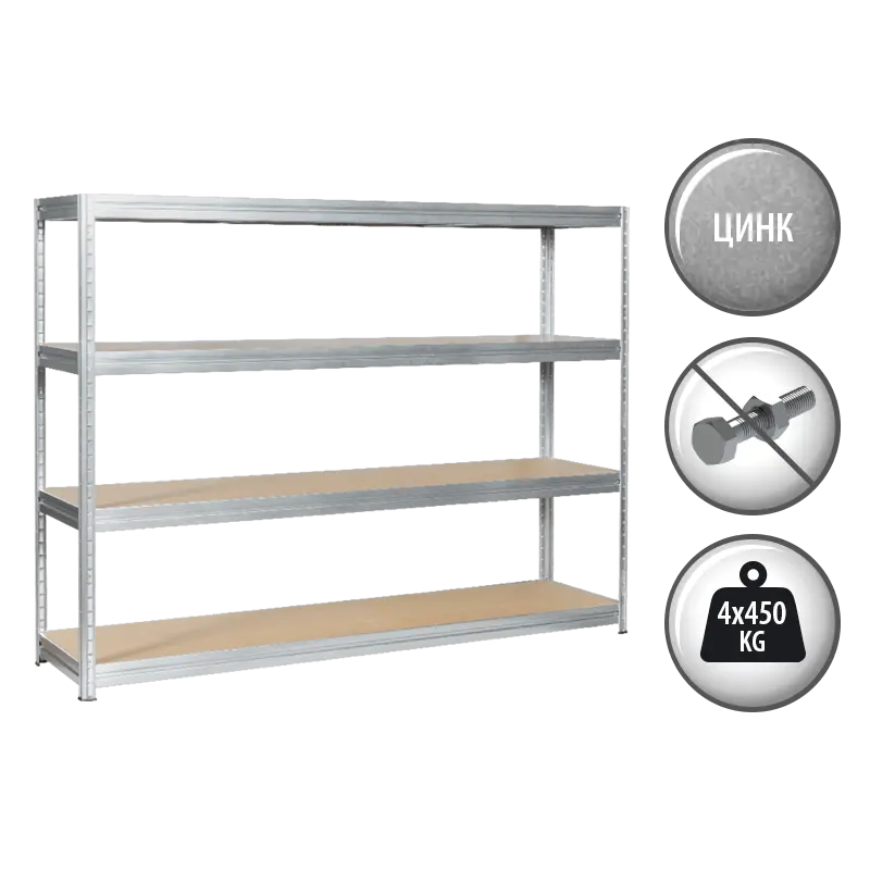 Метален стелаж BTL разполага с безболтова система за бърз и лесен монтаж. Моделът е с размери 177x240x45 см, има 4 регулируеми рафта от МДФ, всеки с максимална товароносимост до 450 кг.