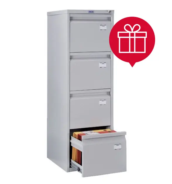 Металната картотека A PMT 44 с 4 чекмеджета е компактен и функционален метален шкаф с четири чекмеджета, заключващи се централно. Специален механизъм предотвратява едновременното им отваряне. Подходяща е за съхранение на папки с формат А4.