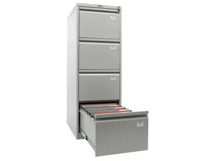 Металната картотека AFC PMT 04 е компактен и функционален метален шкаф с четири чекмеджета, заключващи се централно. Специален механизъм предотвратява едновременното им отваряне. Подходяща е за съхранение на папки с формат А4.