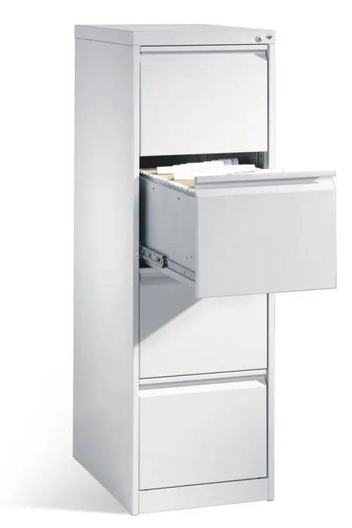 Металната картотека FRT 4 е компактен и функционален метален шкаф с четири чекмеджета, заключващи се централно. Специален механизъм предотвратява едновременното им отваряне. Подходящ е за съхранение на папки с формат А4.
