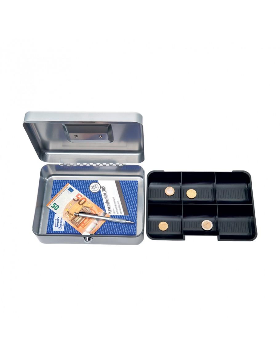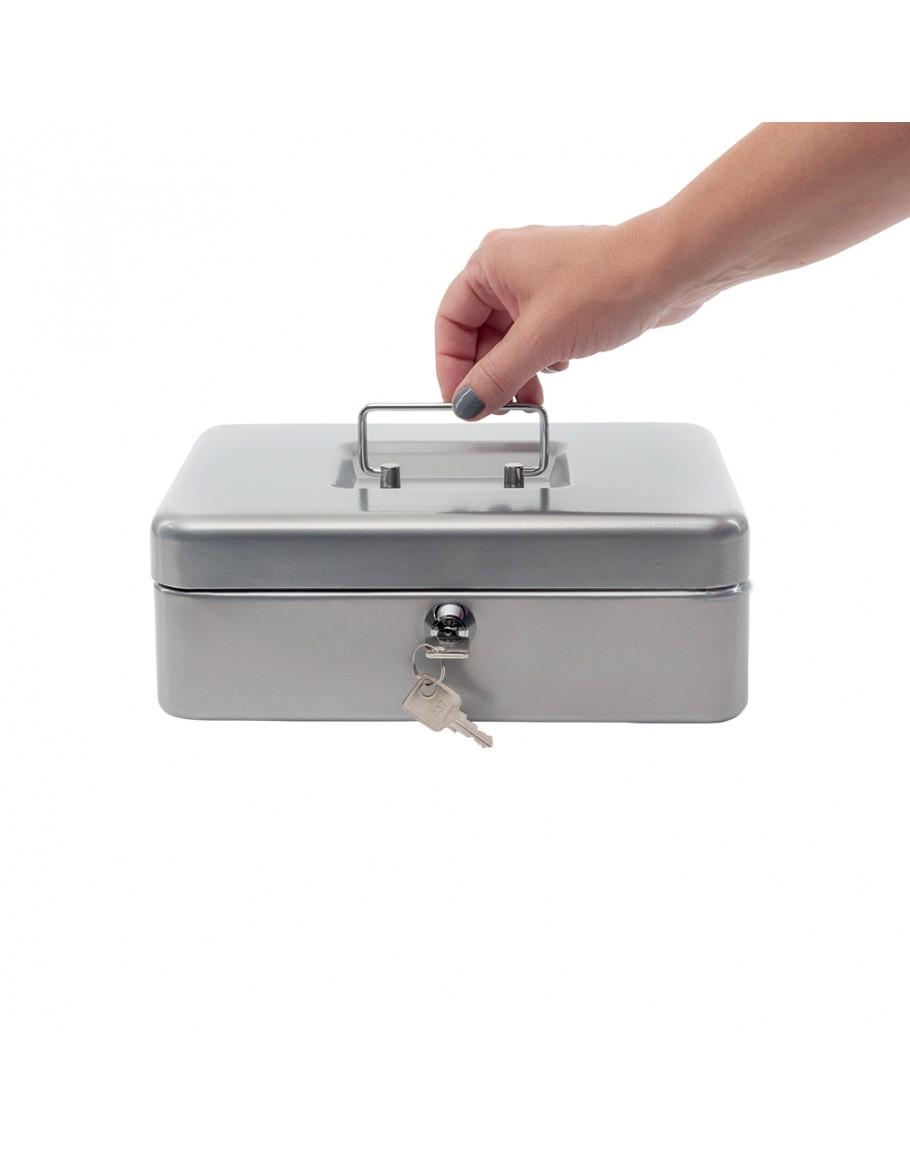 Практична и здрава метална кутия за пари с размери 250х190х90 мм, оборудвана със защитна ключалка и два ключа за максимална сигурност. Вътре е разположена пластмасова тавичка за монети, която улеснява организацията и сортирането на дребните пари.