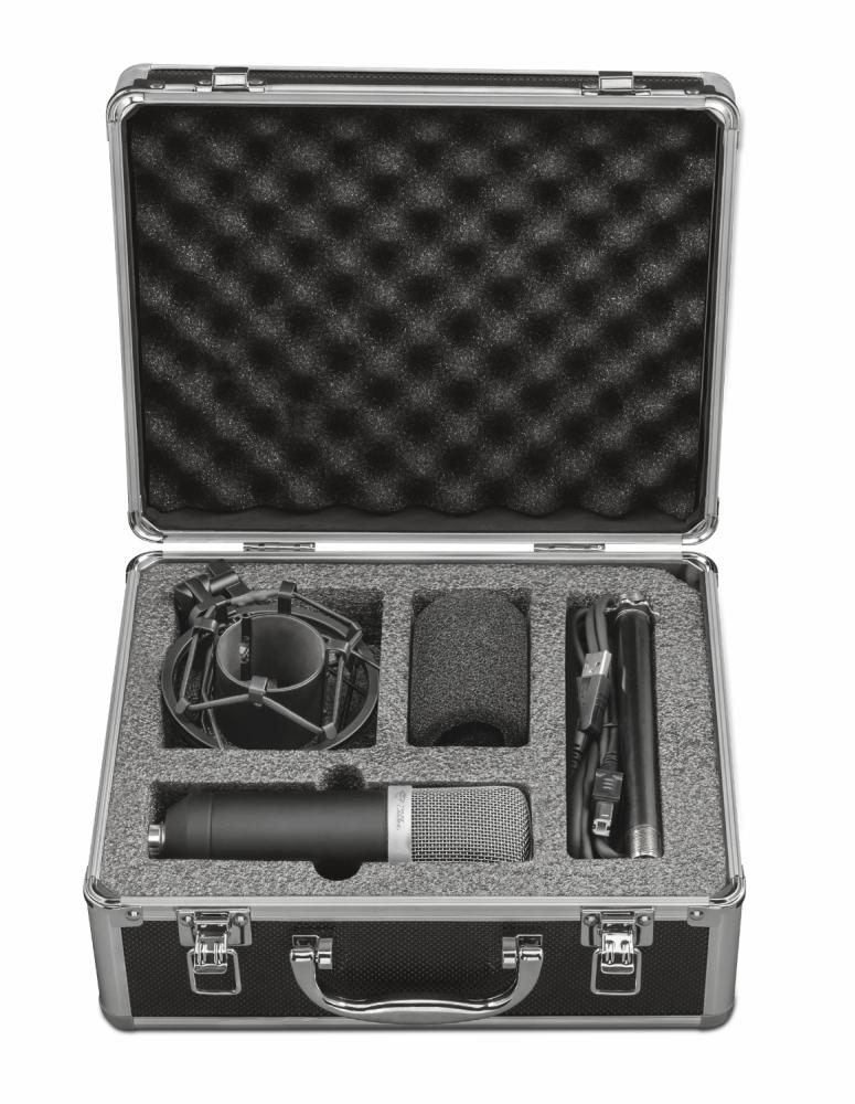 | Други | Warm, rich and clear audio reproduction; for capturing vocals as well as acoustic instruments; Comes with durable aluminum flightcase for safe storage and transport; Package contents: Flightcase, Microphone, USB cable, Pop filters, Shock mount, Desk stand |