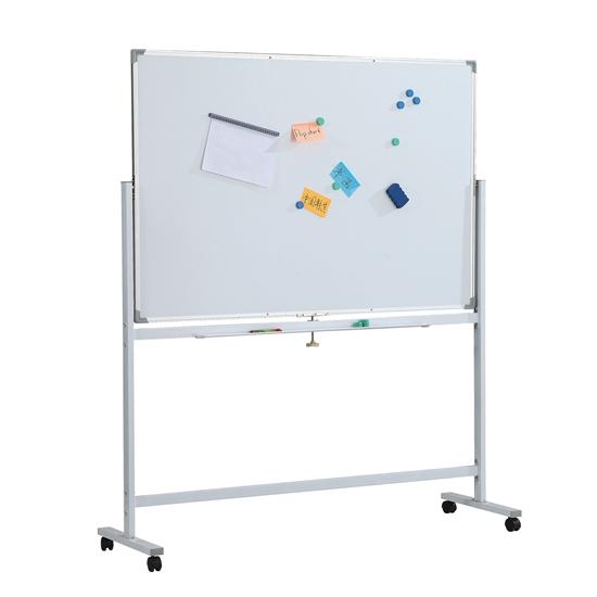 Металната мобилната бяла дъска 90/120 см е изключително удобна и практична за работа, тъй като разполага с хоризонтално завъртане и по този начин разполагате с две страни за писане. Подвижната дъска също така разполага и със заключващ механизъм на колелцата, за да не се движи при употреба. Подходяща е за употреба в училища, образователни центрове и конферетни зали.