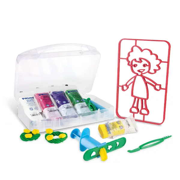 Моделинът на Primo е чудесен за творчество и моделиране от вашето дете. Той не съдържа глутен и е изключително мек на допир и лесно се работи с него. Към него има шаблон на момиче, 6 инструмента, подложка и 5 цвята моделин всеки от по 100 гр.