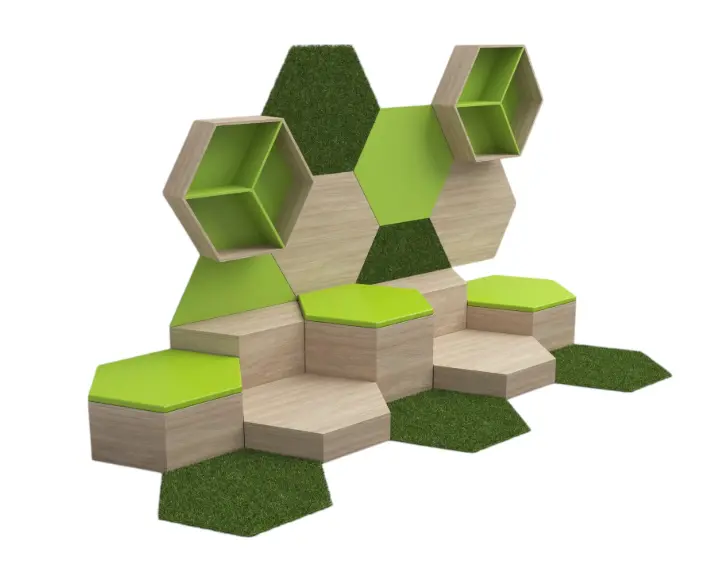 Представяме ви стилна и функционална модулна система ХЕКСАГОН, вдъхновена от геометричната естетика на шестоъгълника. Всеки елемент е проектиран така, че да съчетава визуален ефект с практичност, предлагайки множество възможности за организация и оформление на пространството.