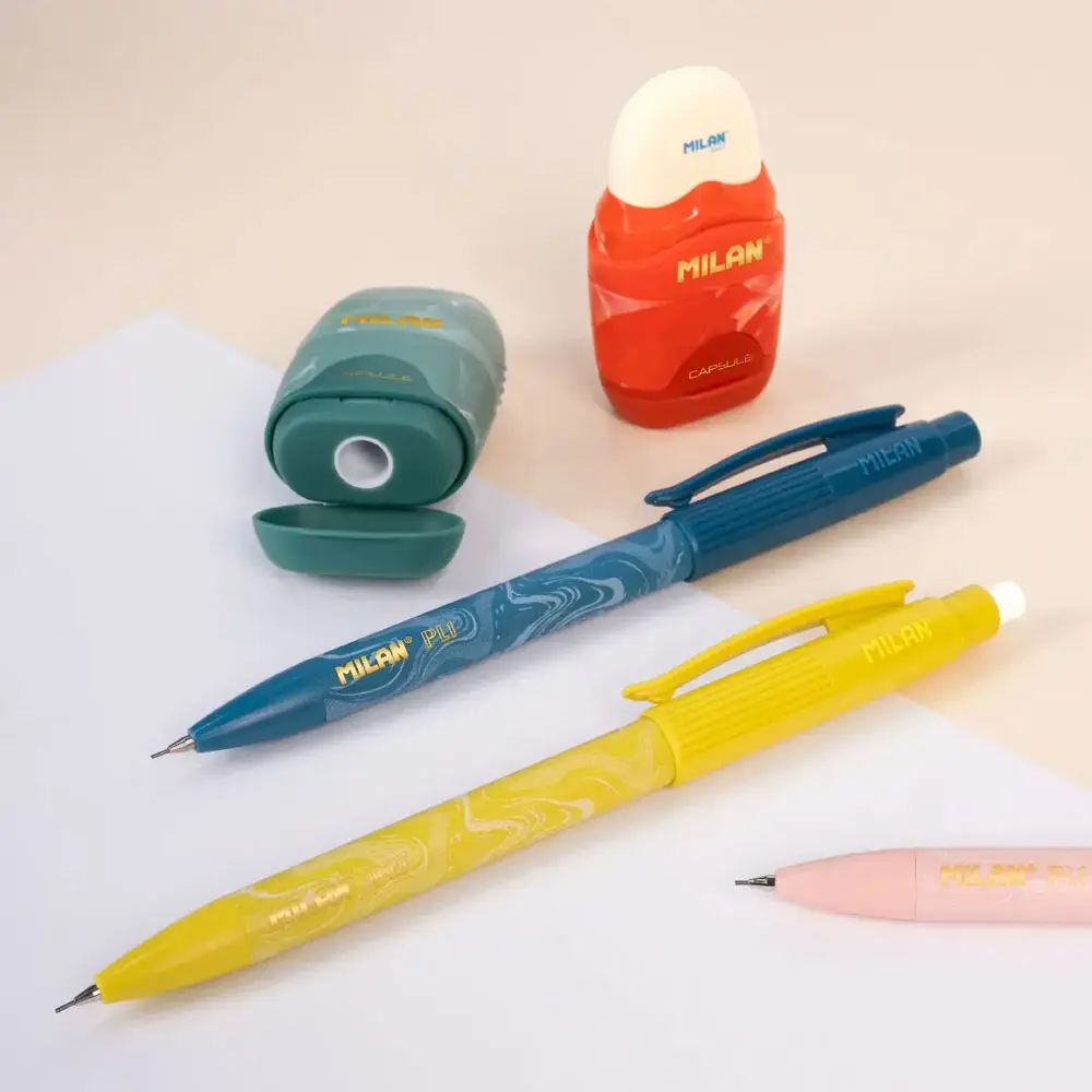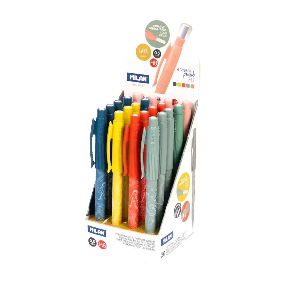 Молив автоматичен Milan Lawa 0.5 мм с гума съчетава стилна визия със стабилен захват без приплъзване за комфорт при продължително писане, а функционалността му се допълва от въртяща се масивна гумичка и надежден PL1 механизъм.