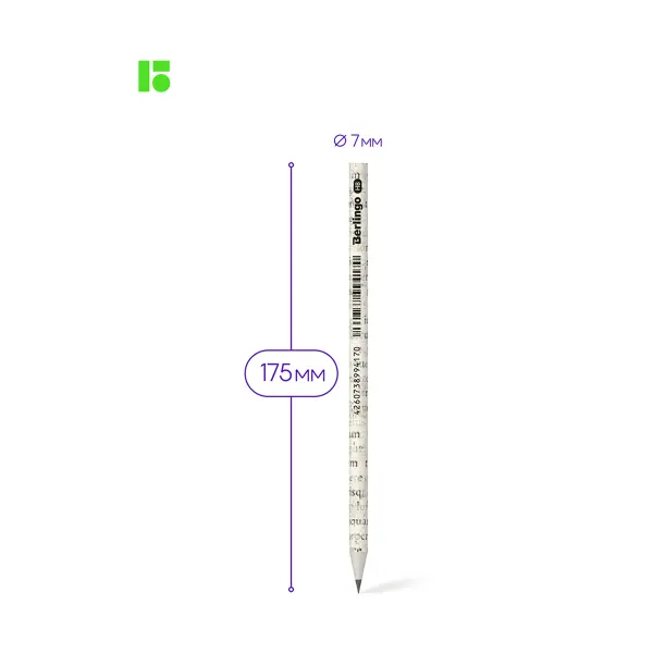 Молив графитен Berlingo Eco HB е практичен и удобен графитен молив. Твърдостта на графита е НВ и е подходящ за писане и рисуване. Тялото на молива е направено от пресована хартия, а формата му е кръгла и удобна за хващане.