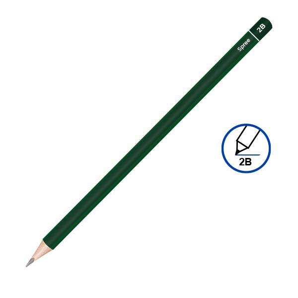 Графитният молив Spree  2B притежава триъгълна форма на тялото и система на пълно слепване на графита с тялото, което го прави издържлив и удобен за употреба. Подходящ е както за чертане и рисуване, така и за водене на записки.