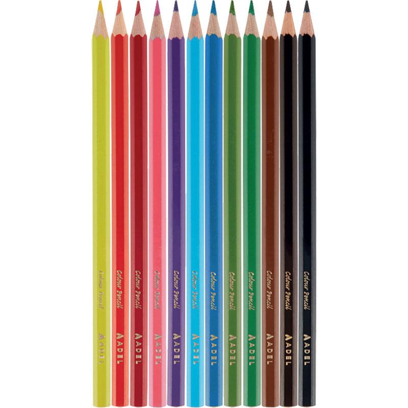 Моливи цветни Adel B 12 цвята са изработени с патентована система за поставяне на графита, така че да бъде устойчив на счупвания. Комплектът съдържа 12 цвята лесни за подостряне моливи.