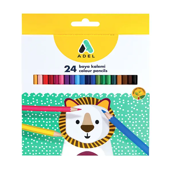 Моливи цветни Adel C 24 цвята са изработени с патентована система за поставяне на графита, така че да бъде устойчив на счупвания. Комплектът съдържа 24 цвята лесни за подостряне моливи.