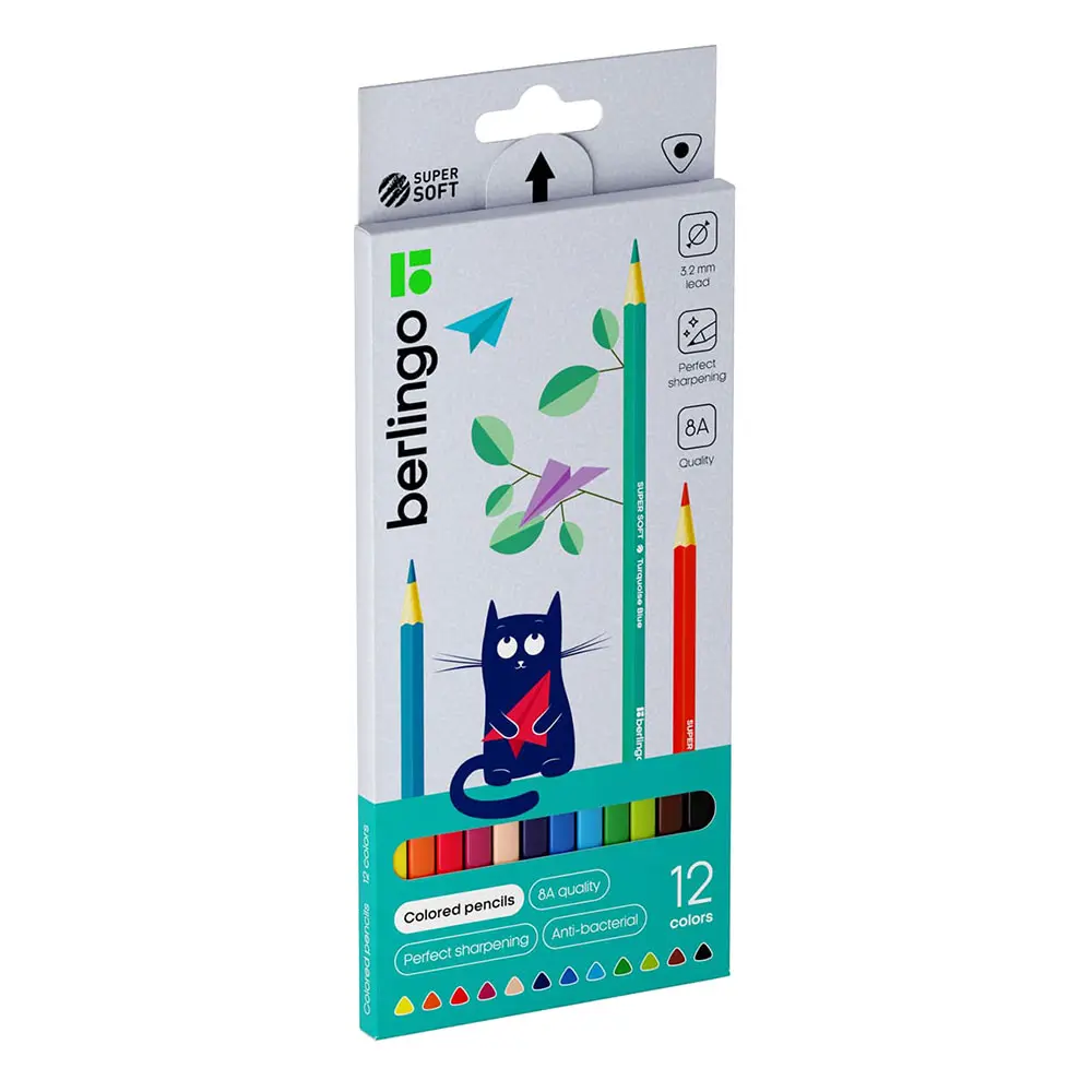 Цветните моливи Berlingo 12 цвята са изключително наситени цветни моливи, подходящи за деца. Могат да се използват с техники на рисуване с успореден и кръстосан щрих, запълване с къси извити линии, запълване с точки, напластяване и полиране.
