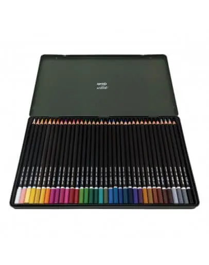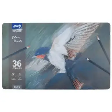 Комплект цветни моливи с 36 ярки и наситени цвята, подходящи за рисуване, оцветяване и различни творчески проекти. Моливите са със шестоъгълна форма, която осигурява удобен и стабилен захват при работа и предотвратява търкалянето по повърхността. Графитът с диаметър 4 мм осигурява плавно и равномерно нанасяне на цвета, добра покривност и висока устойчивост на счупване. Цветовете се смесват лесно и позволяват постигане на различни художествени ефекти. Комплектът се предлага в здрава и практична метална кутия, която предпазва моливите и осигурява удобно съхранение и пренасяне.