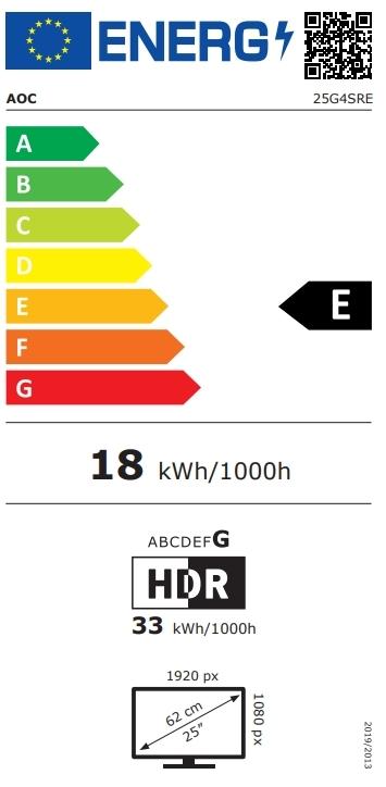 Монитор AOC 25G4SRE, 24.5' Fast IPS WLED, 1920x1080@300Hz (OC 310Hz), 1ms GtG, 0.3ms MPRT, 400cd m/2, 1000:1, 80M:1 DCR, Adaptive Sync, FlickerFree, Tilt, 2xHDMI, DP